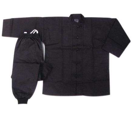 Kungfu Suit 100% cotton black died, with button & lapel in full black, Trouser with elastic waistband Weight 8 oz.