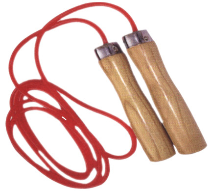 Wooden handle with or without ball barring skipping ropes made of Nylon.